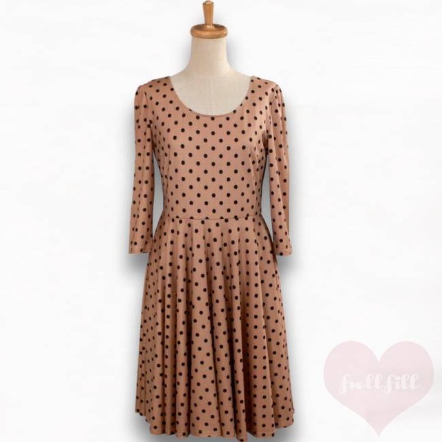 レトロドット フィット&フレアワンピース ライトブラウン×ブラック 古着