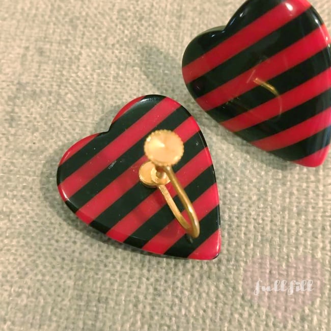 黒×赤 ハート型 ボーダー柄 イヤリング ヴィンテージ レトロ