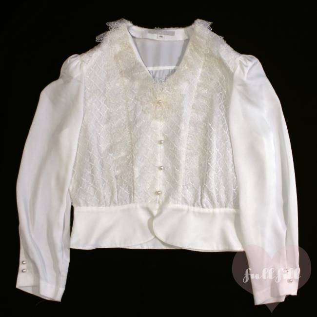 ブローチ付き 葉刺繍レース 長袖ホワイトジャケットブラウス 古着