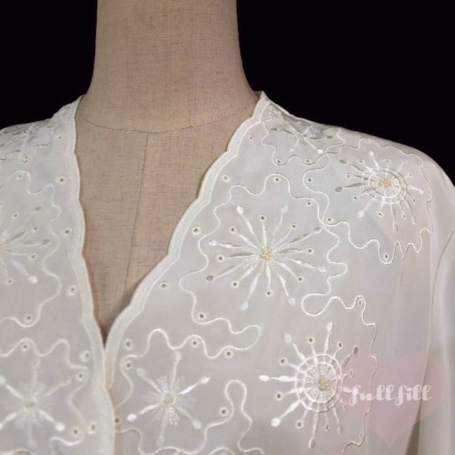スカラップ刺繍 ビーズ 長袖ホワイトブラウス 古着