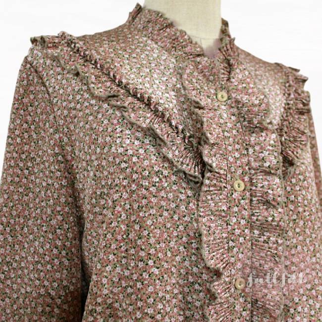 クラシカルガーリーな小花柄の長袖ブラウス。