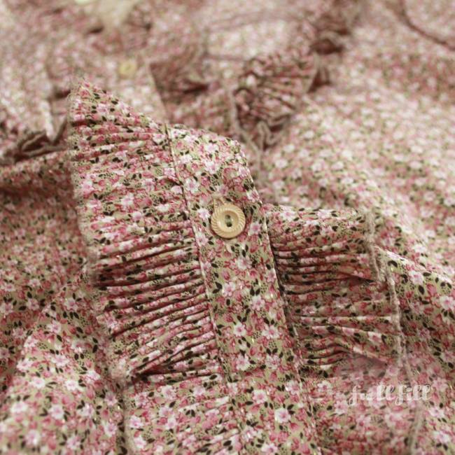 小花柄 フリルプリーツ長袖ブラウス 古着