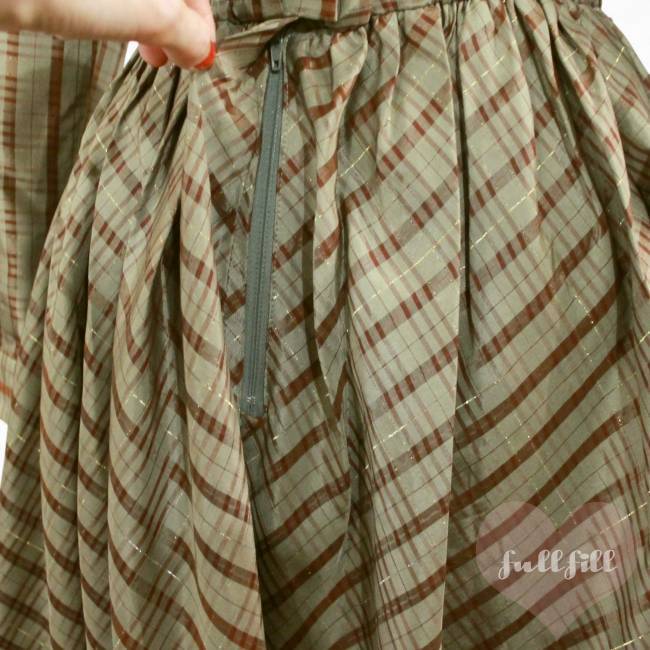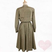 金糸入り チェック柄長袖フレアワンピース 古着