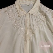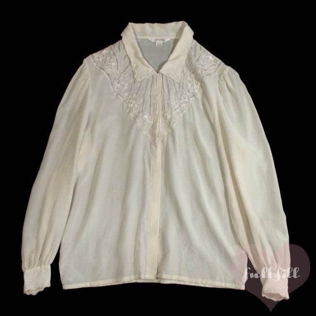 モール刺繍 絹 シルク生成り長袖ブラウス 古着