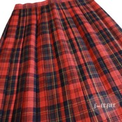 赤チェック柄 ウールプリーツスカート 古着 毛100%