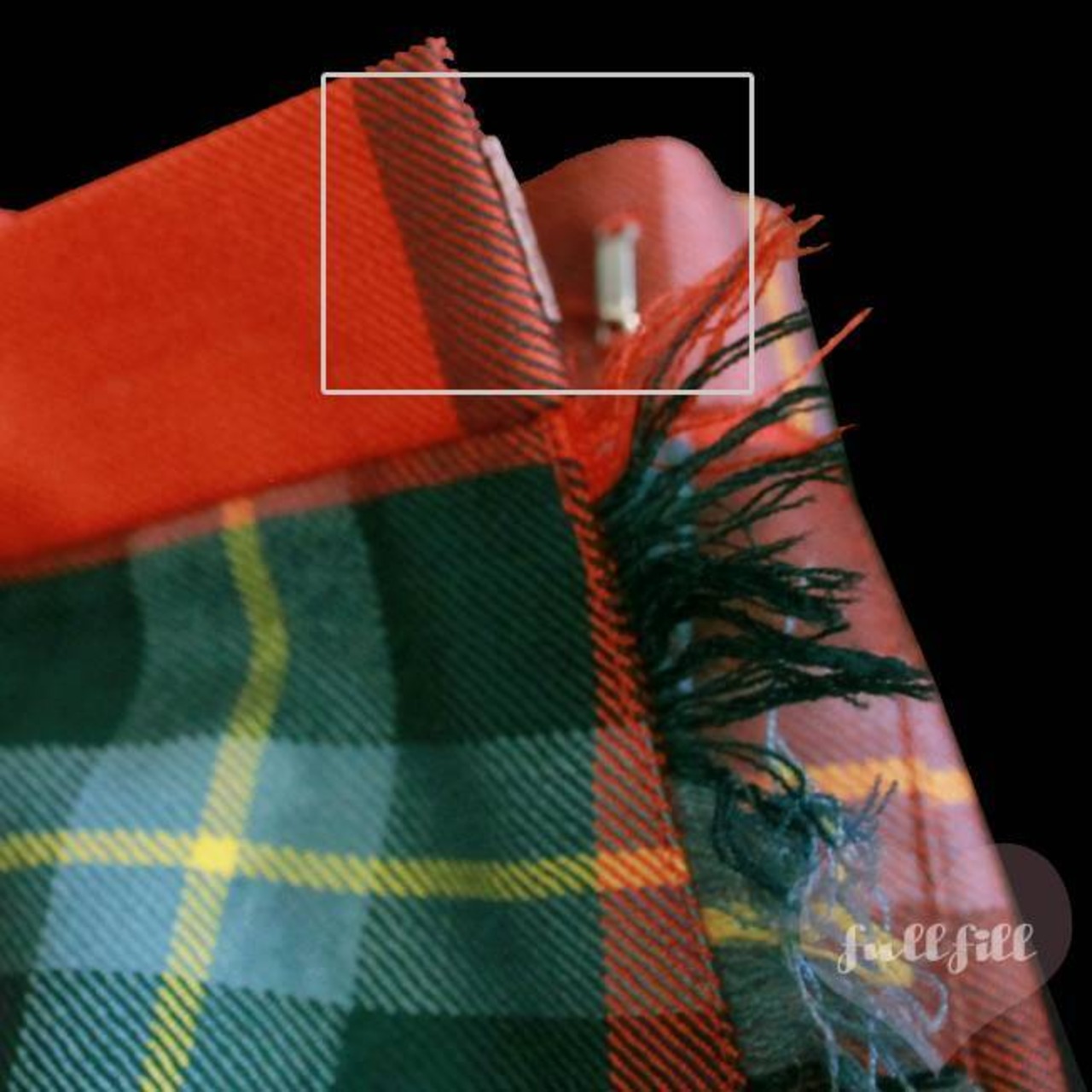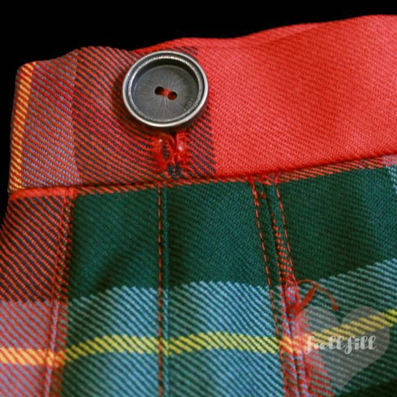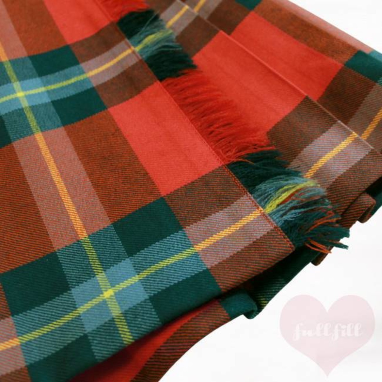 赤×グリーンベースのチェック柄プリーツラッフルスカート。