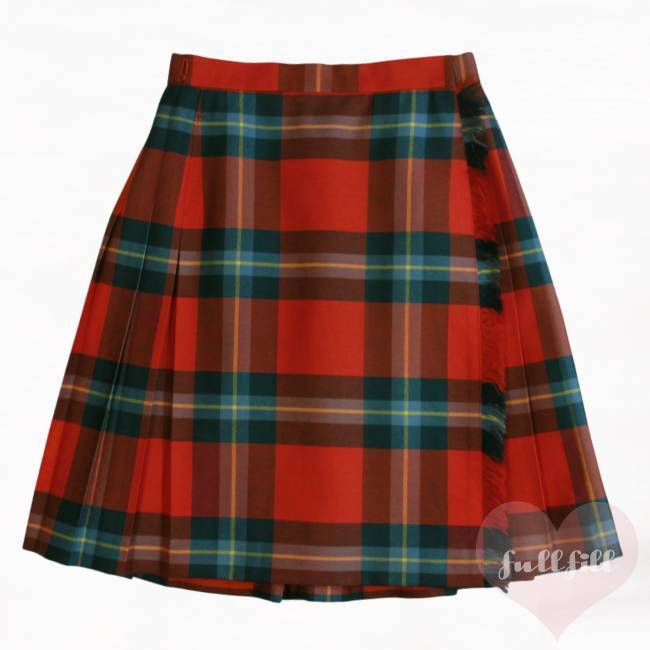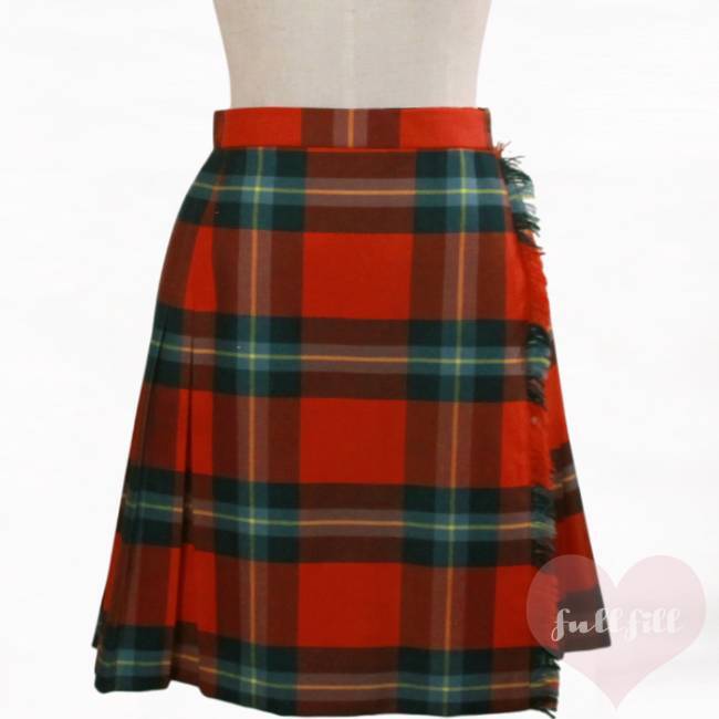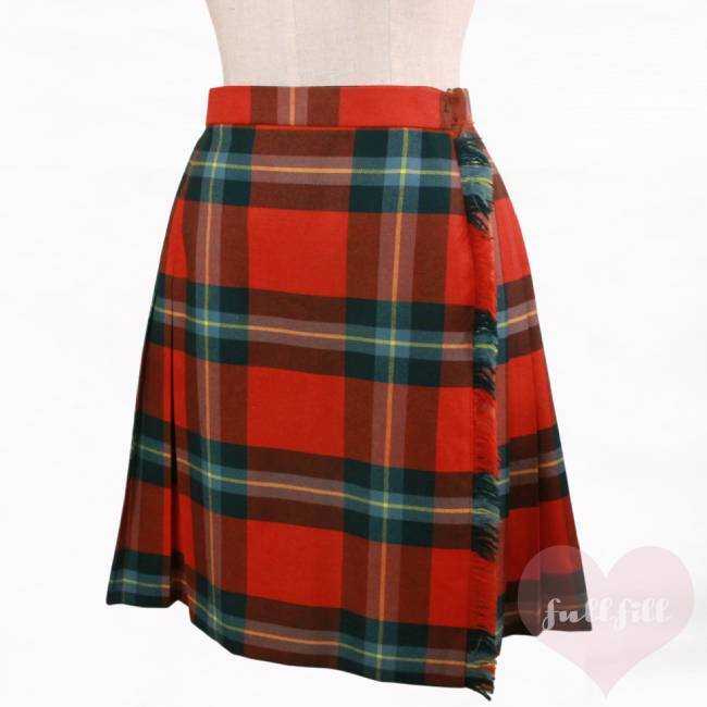 赤×グリーンベースのチェック柄プリーツラップスカート。
