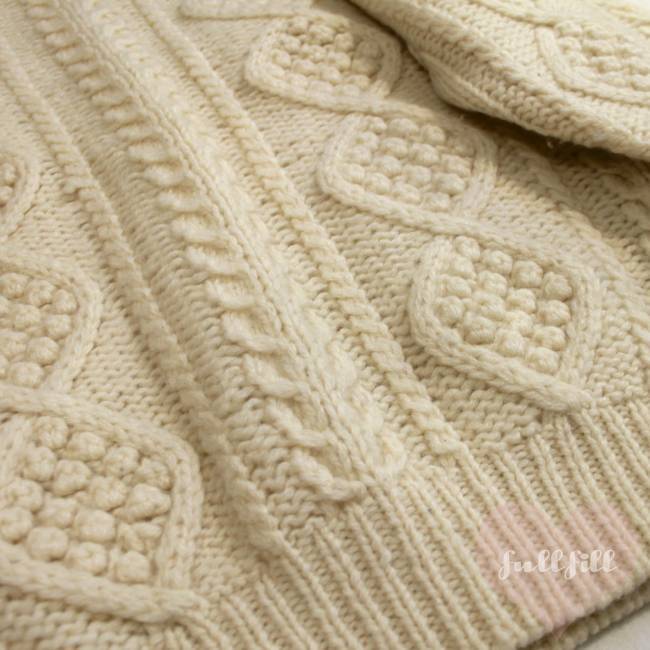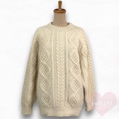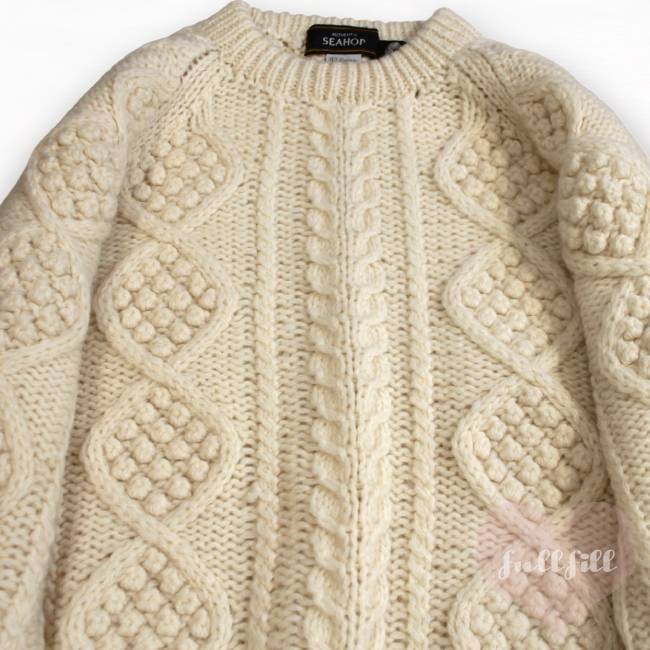 立体的なポップコーン編みとダイヤ柄が美しいフィッシャーマンニット。