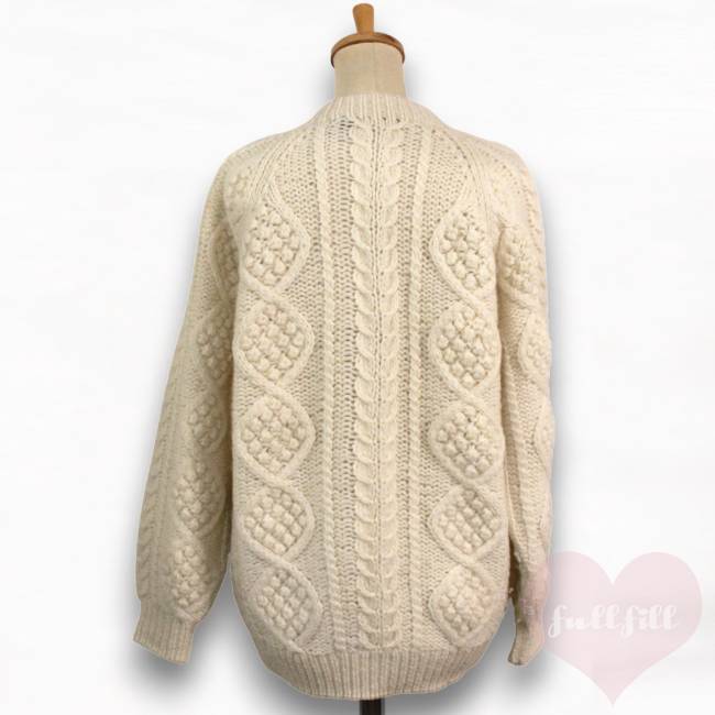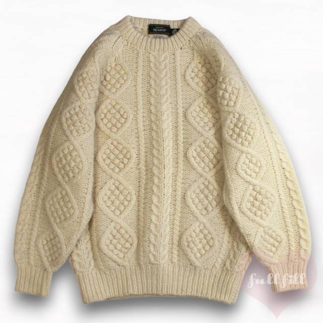 ダイヤ×ポップコーン編み フィッシャーマンニット ウールマーク 古着