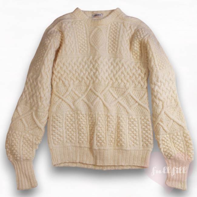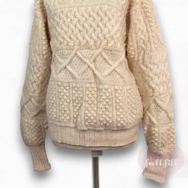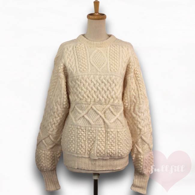 ダイヤ×ポップコーン編み フィッシャーマンウールニット 古着【LAUTREAMONT】
