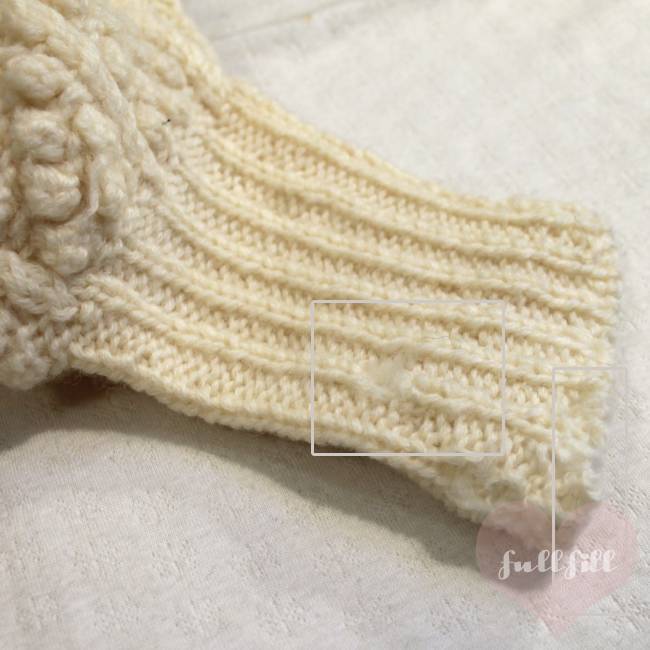 袖や裾にかけてケーブル編みが流れるように配置されています。