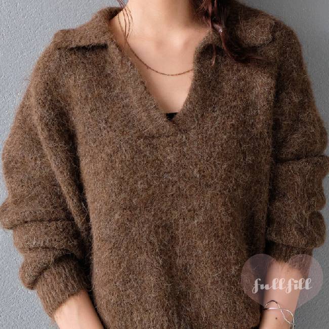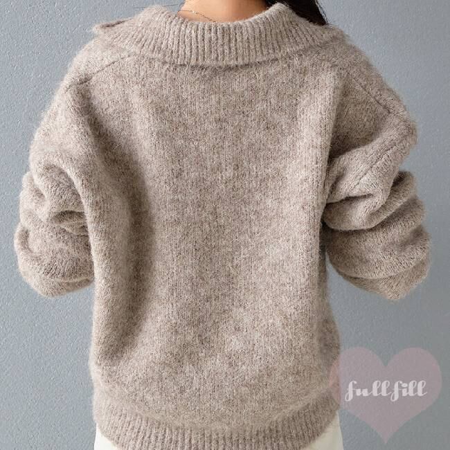 秋冬のコーデを優しく彩る、ふわふわのモヘア風襟付きVネックニット。