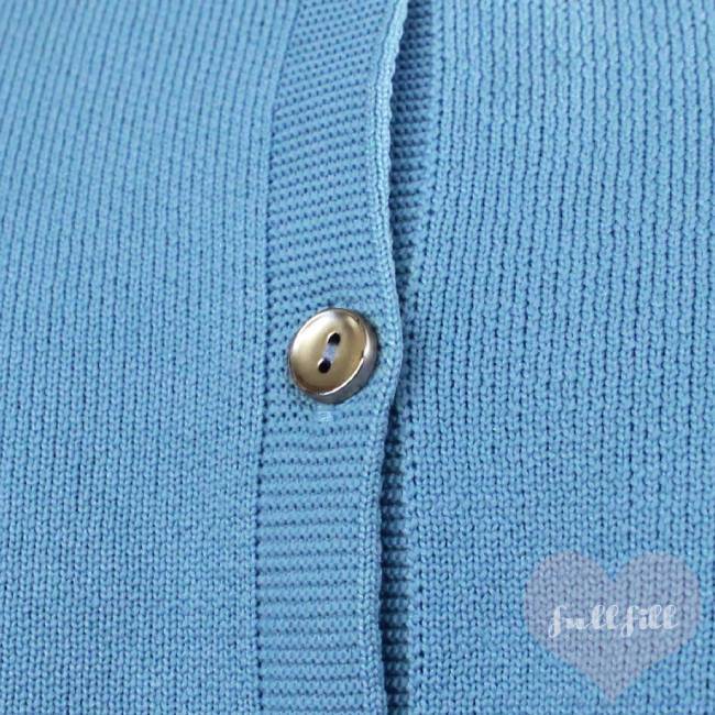 春ニット / ショートカーディガン / ニットカーディガン / ボリューム袖 / ブルー / 体型カバー / フェミニン / きれいめカジュアル / 大人かわいい / 春コーデ / レディーストップス / 羽織り / リブニット