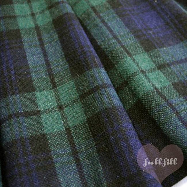 クラシカルなグリーン×ネイビーのタータンチェック柄が目を惹く、ウール素材のプリーツスカート。