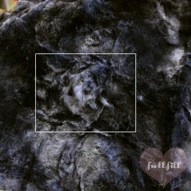 後ろ裾から10cm上程に毛並みの劣化(潰れ)が感じられる箇所があります。(12枚目)