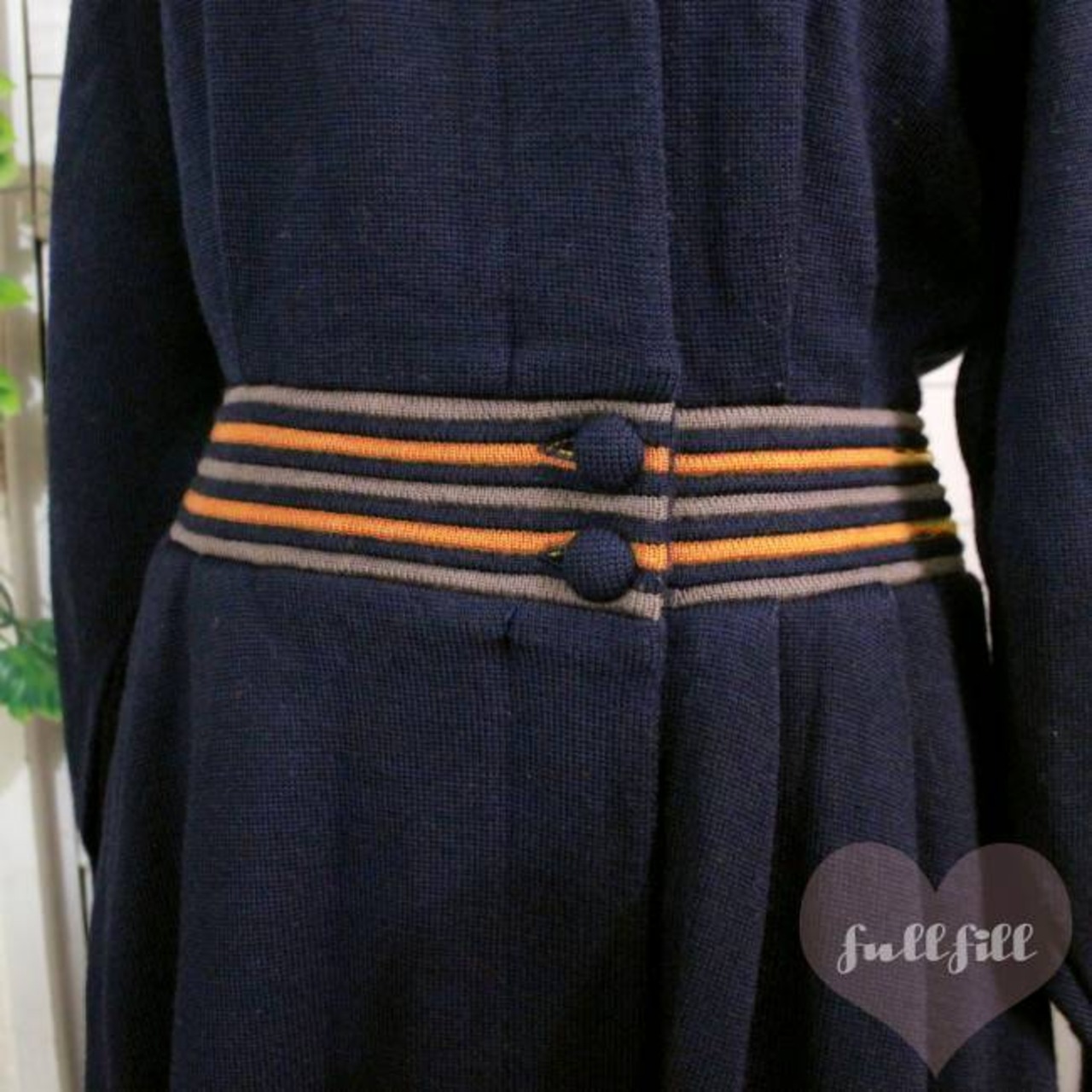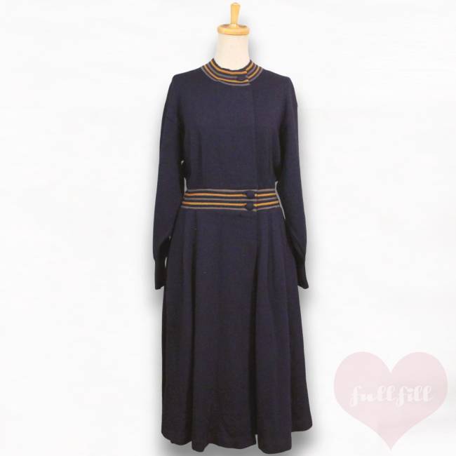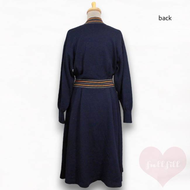 ネイビー ウール長袖ロングワンピース 古着 vintage 【LANCEL/ランセル】