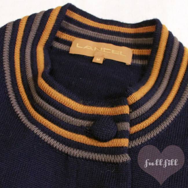 深みのあるネイビーに、襟元とウエストのボーダーラインが映えるランセルのワンピース。