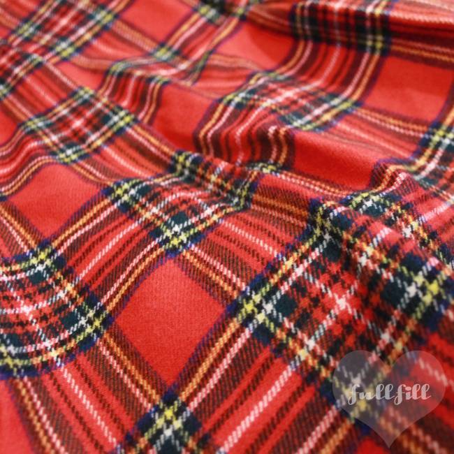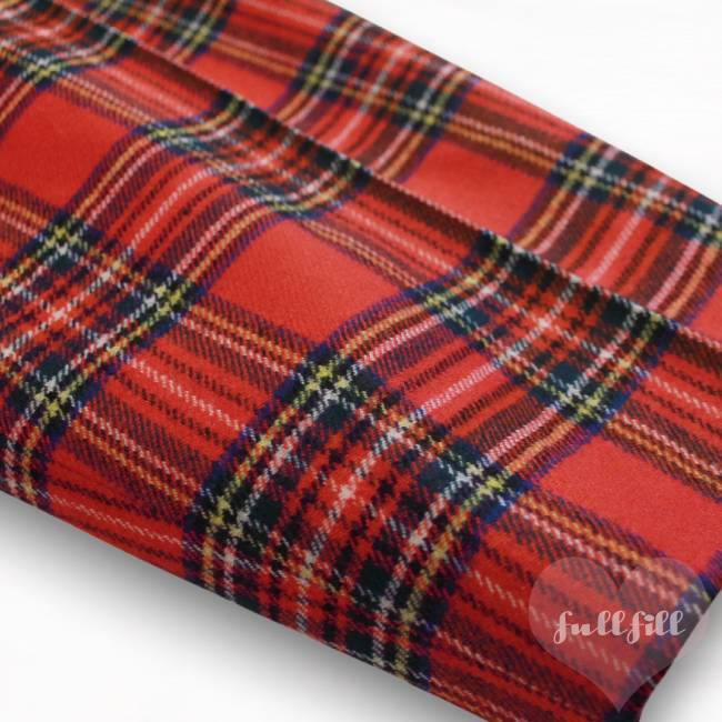 レッドベースにブルー・イエロー・グリーンのラインが交差する、王道のタータン柄。