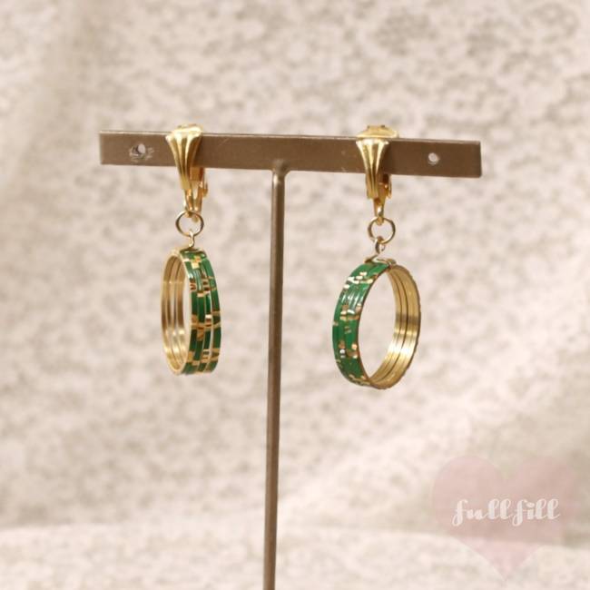 グリーンエナメル×ゴールド フープイヤリング