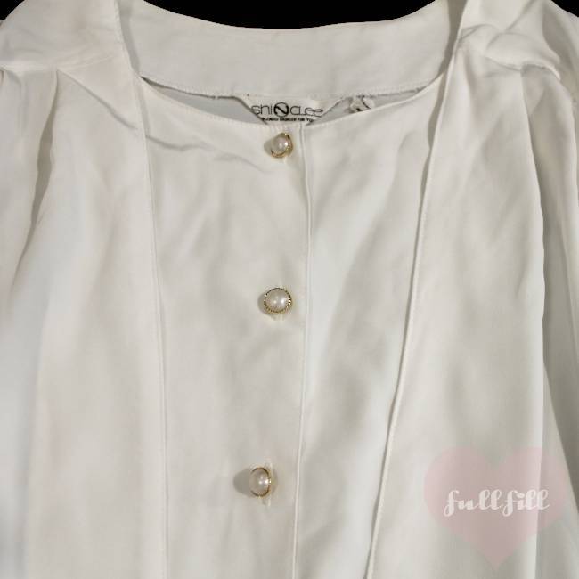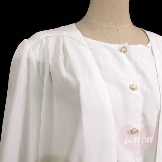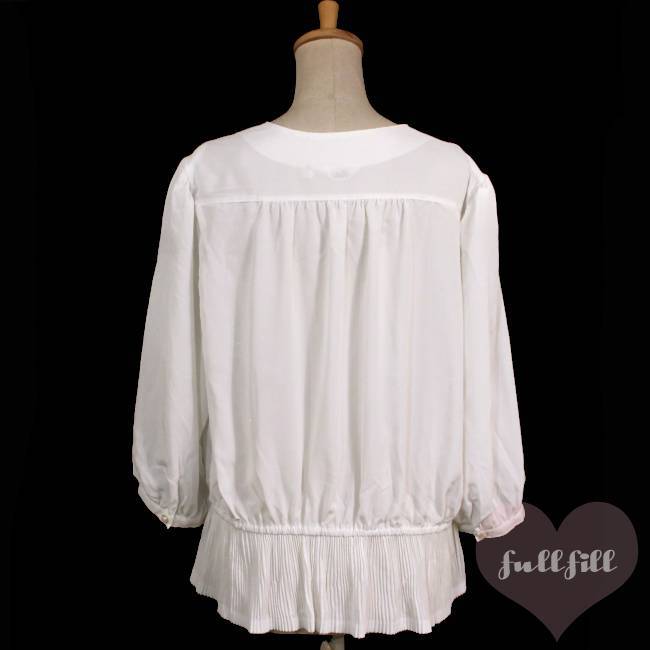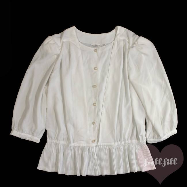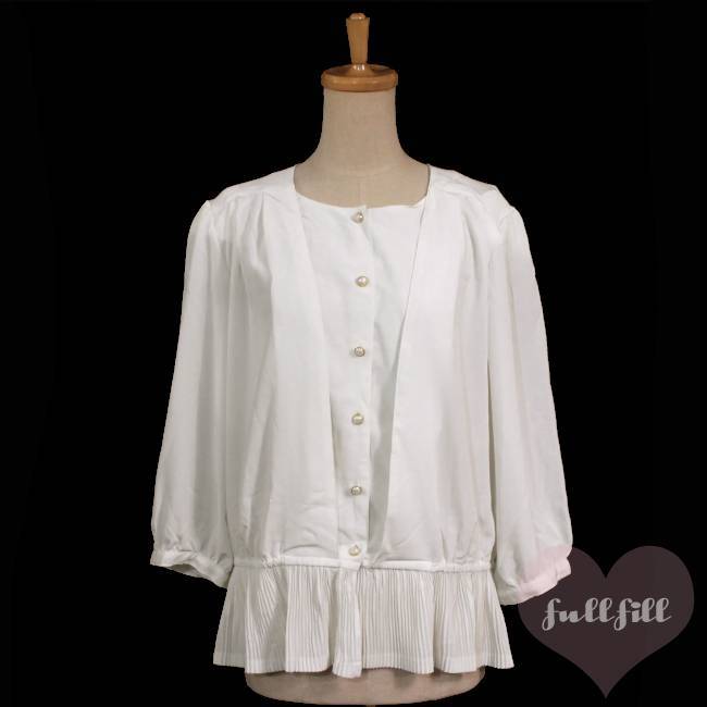 パールボタン×プリーツヘム ホワイトブラウス 古着