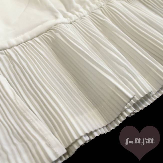 動くたびに裾のプリーツが揺れて女性らしさを引き立てます。