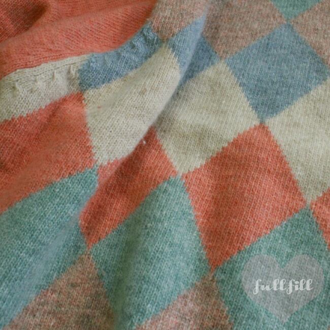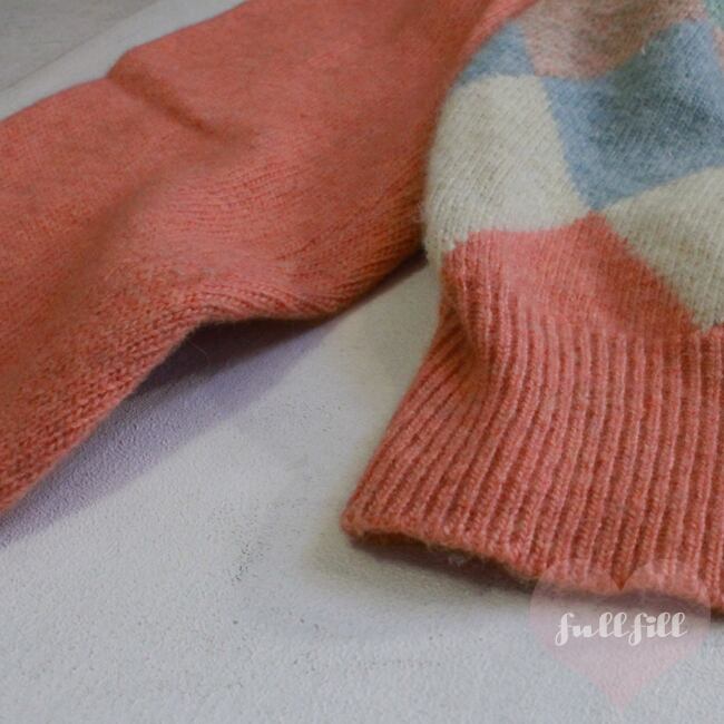 サーモンピンクのダイヤ柄長袖ニット 古着