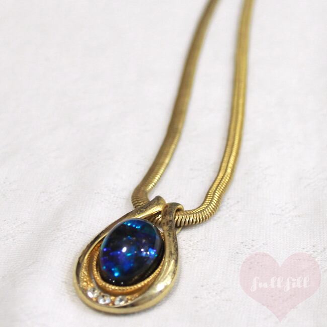 ゴールドに綺麗なブルーが雫のように映えるネックレス。
