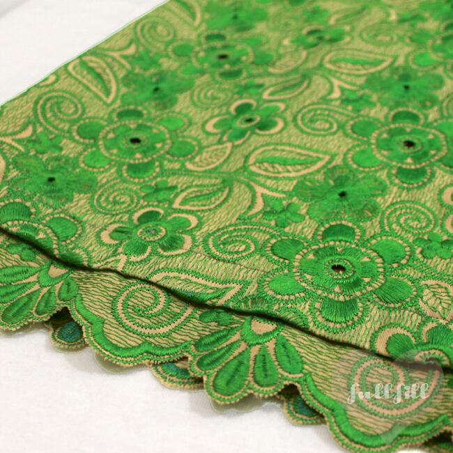 鮮やかで眩しいグリーンの総花柄刺繍スカート。