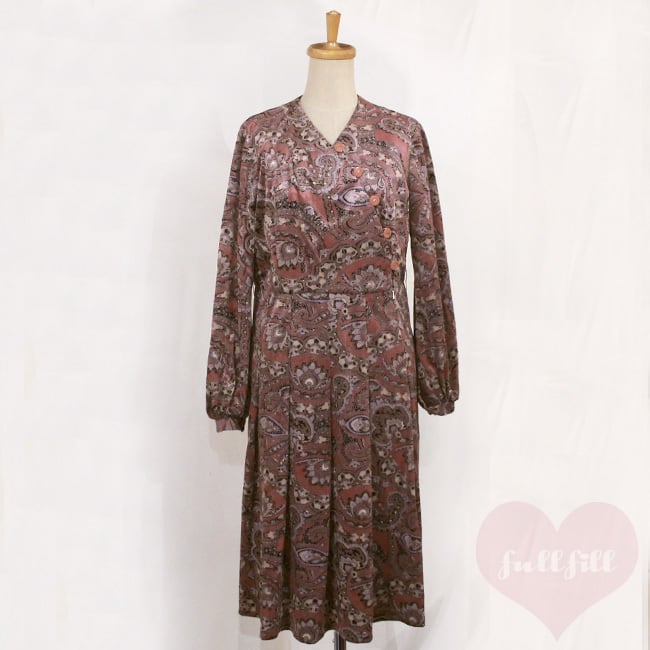 ピンクパープル ベロア オリエンタル長袖ワンピース 古着