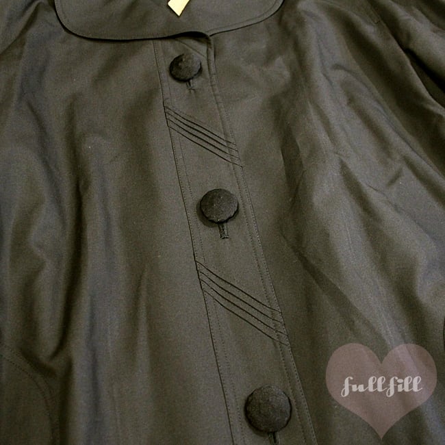ボタンはベロア調の生地でくるまれ、単色の中にほんのアクセントです。