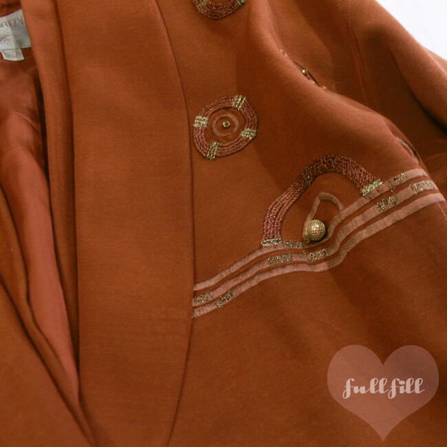 テラコッタ くるくるサークル刺繍 ポンポン付き ショールカラージャンパー ブルゾン 古着