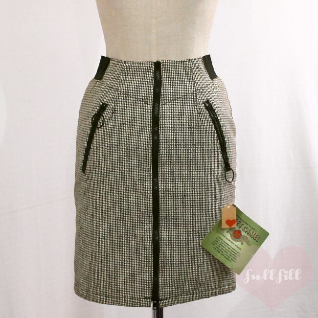 千鳥格子 ジップアップ タイトスカート 古着 デッドストック