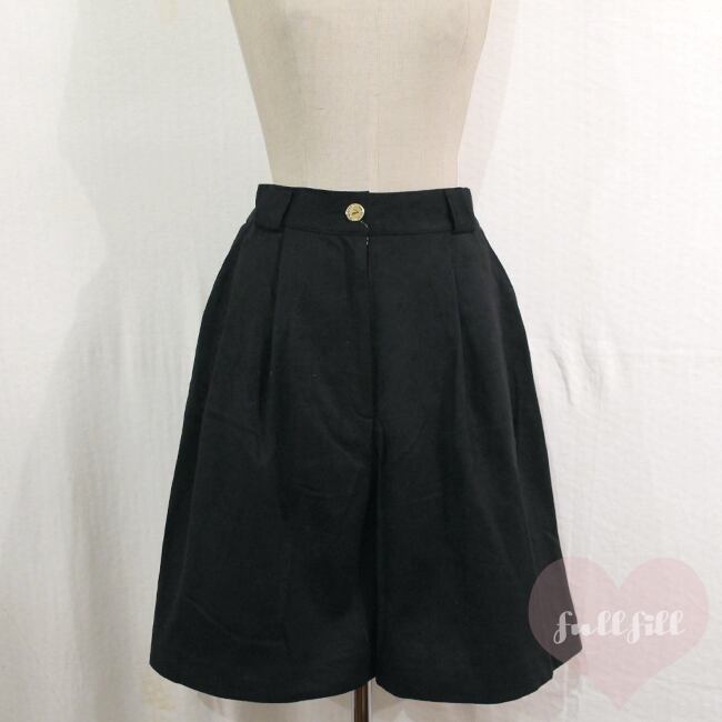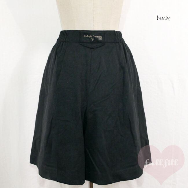 スエード風 ブラックのキュロットパンツ 古着 ハーフパンツ