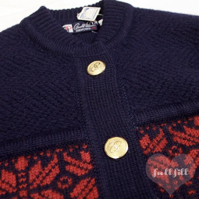 金ボタン ノルディック柄 ニットカーディガン 雪の結晶柄 古着 デッドストック《Arnold Palmer/アーノルドパーマー》