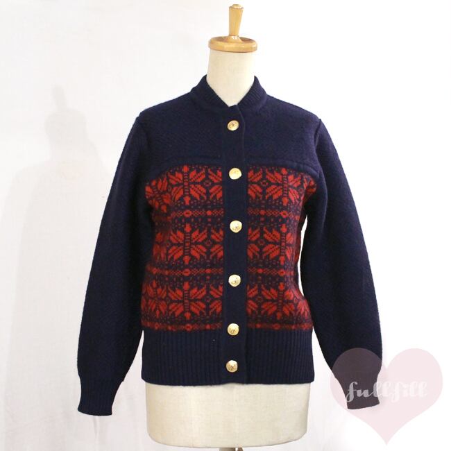 ネイビーとレッドのカラーリングがレトロなニットカーディガンです。