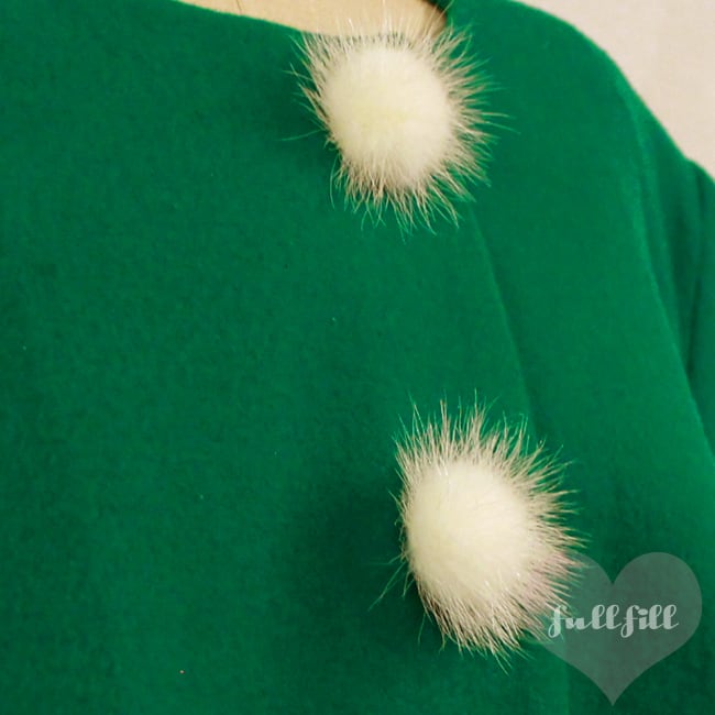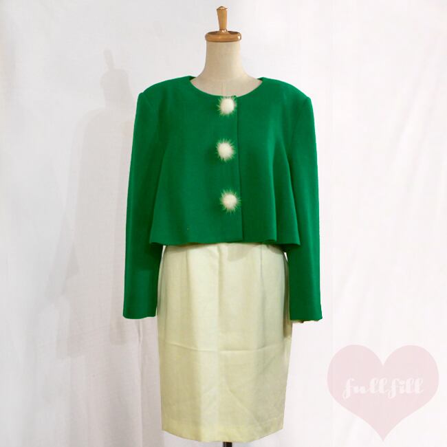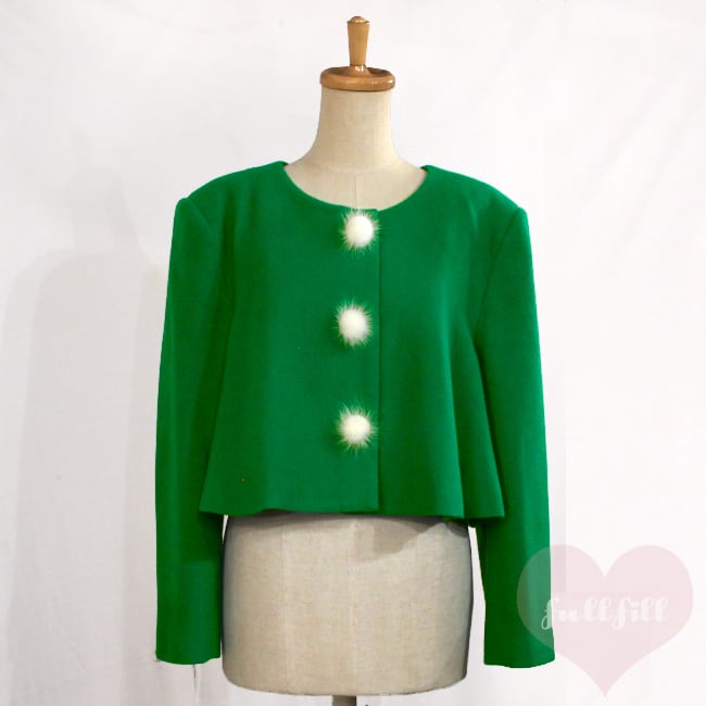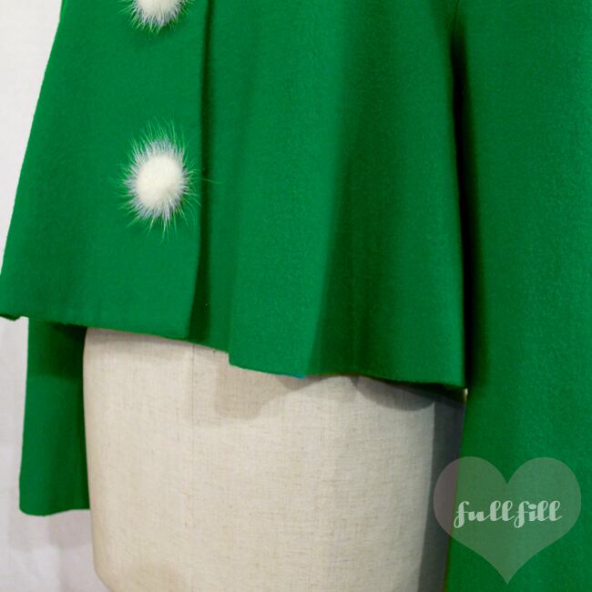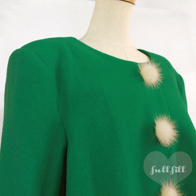 ミンクのポンポンが可愛い鮮やかなグリーンのショートコートに