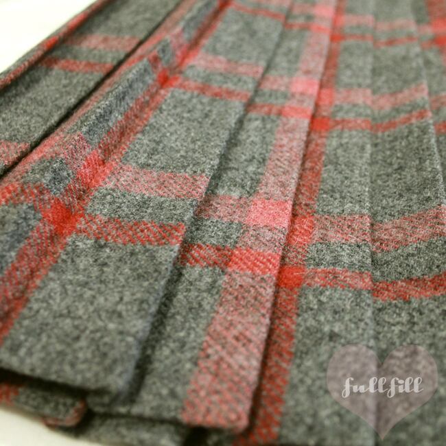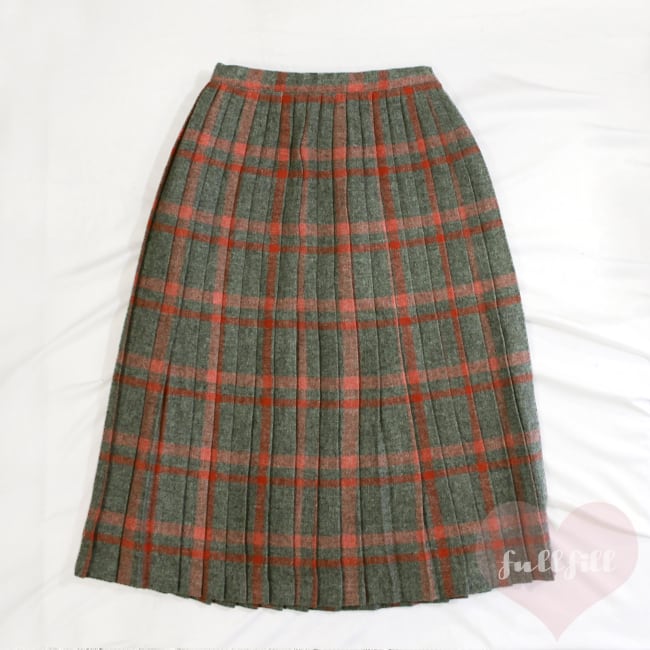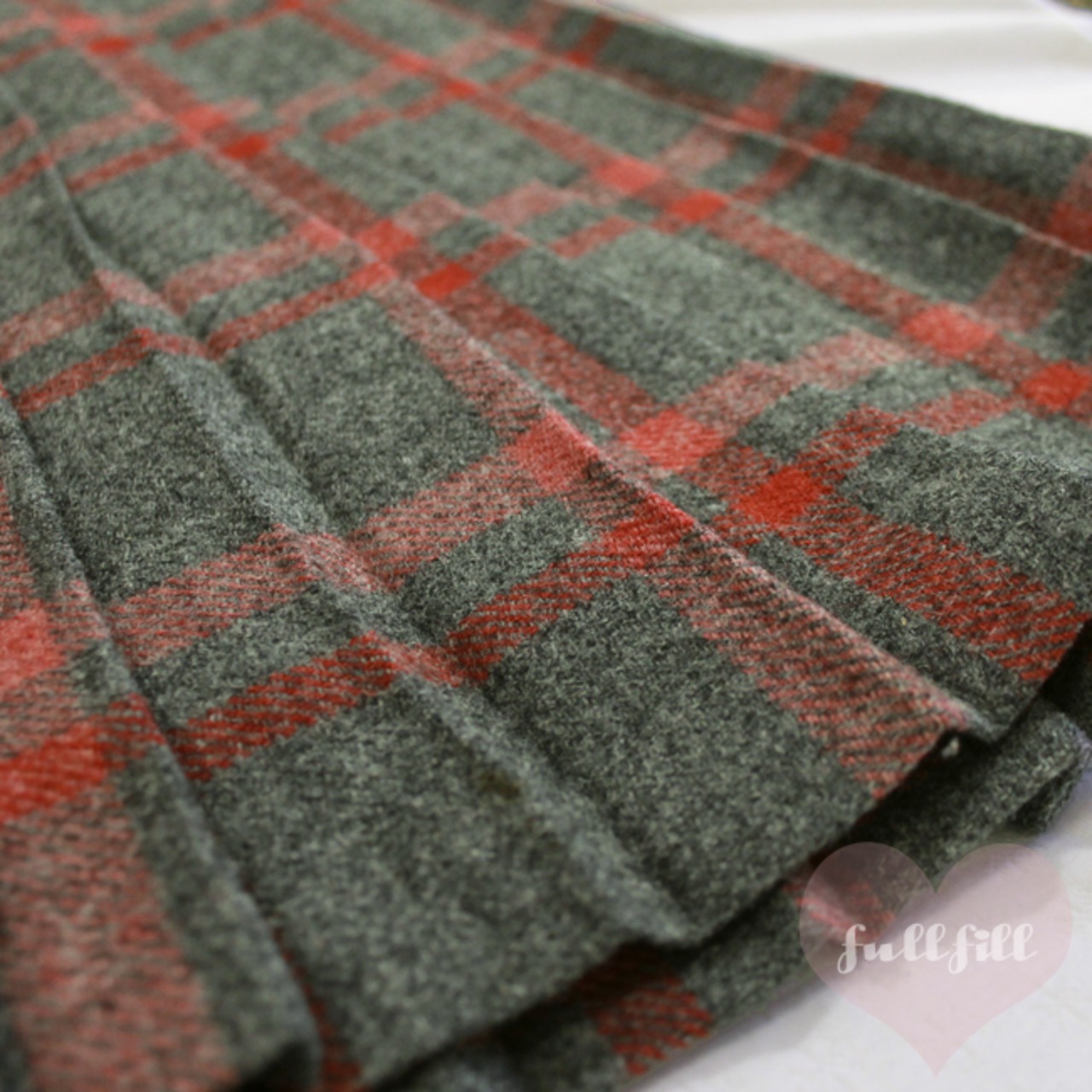 グレー×レッド チェック柄 プリーツウールスカート 古着