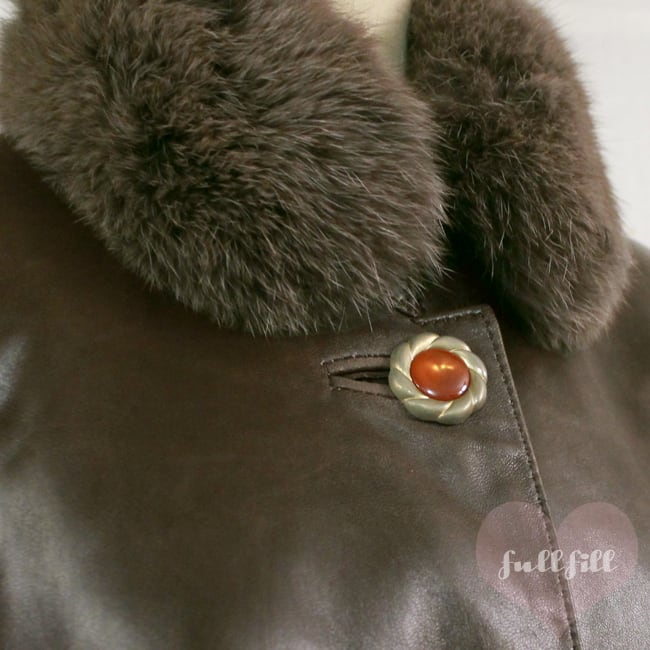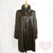 ファー付け襟付き ラムレザーコート 羊革 古着