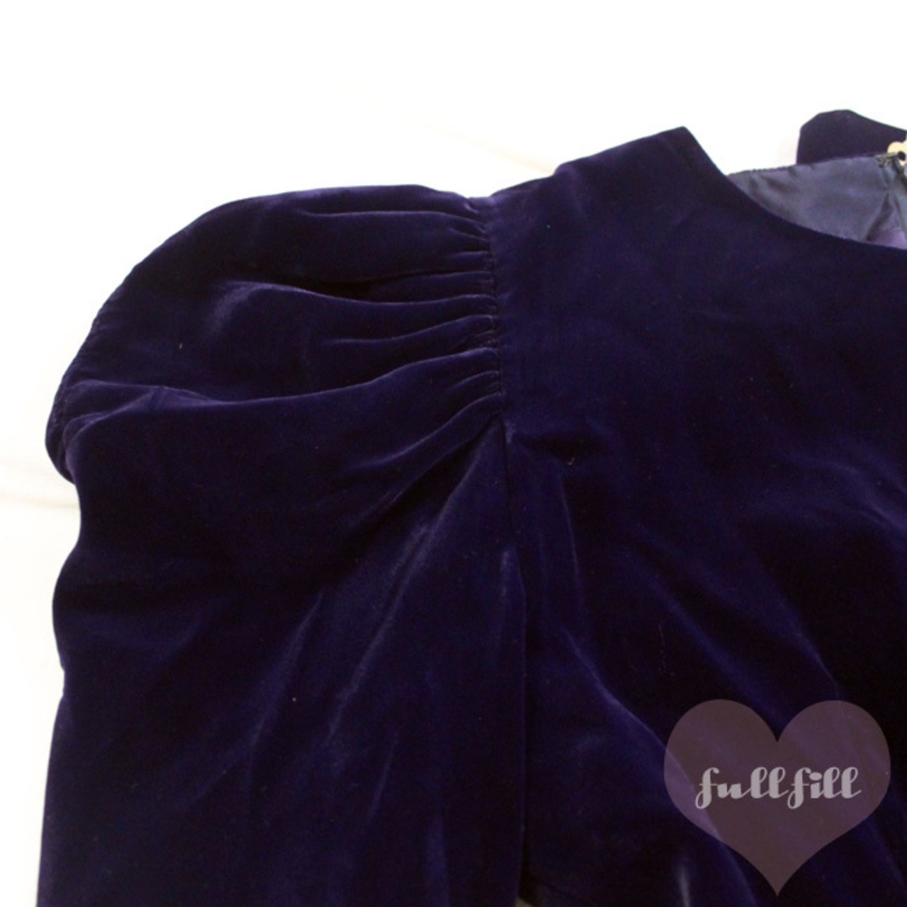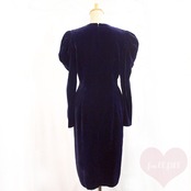 ネイビー ベロア パフスリーブ長袖ワンピースドレス 古着