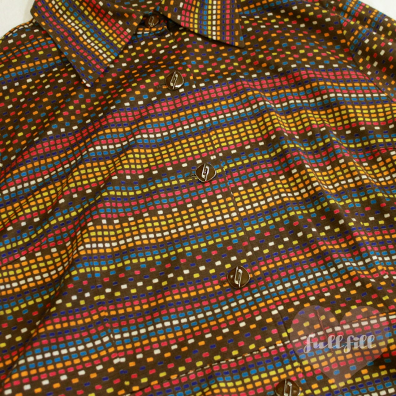 レトロモザイクタイル柄 長袖ワンピース 古着